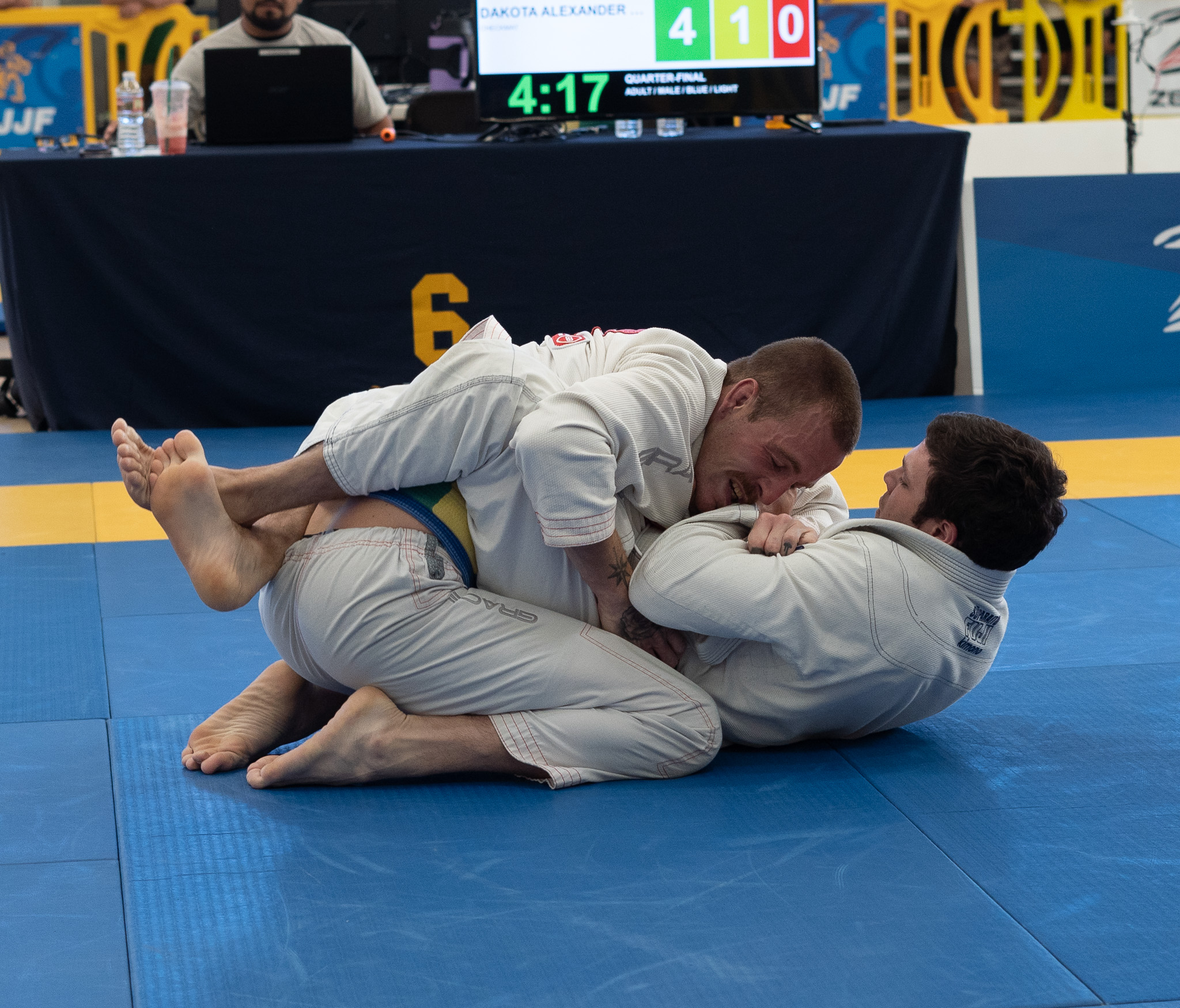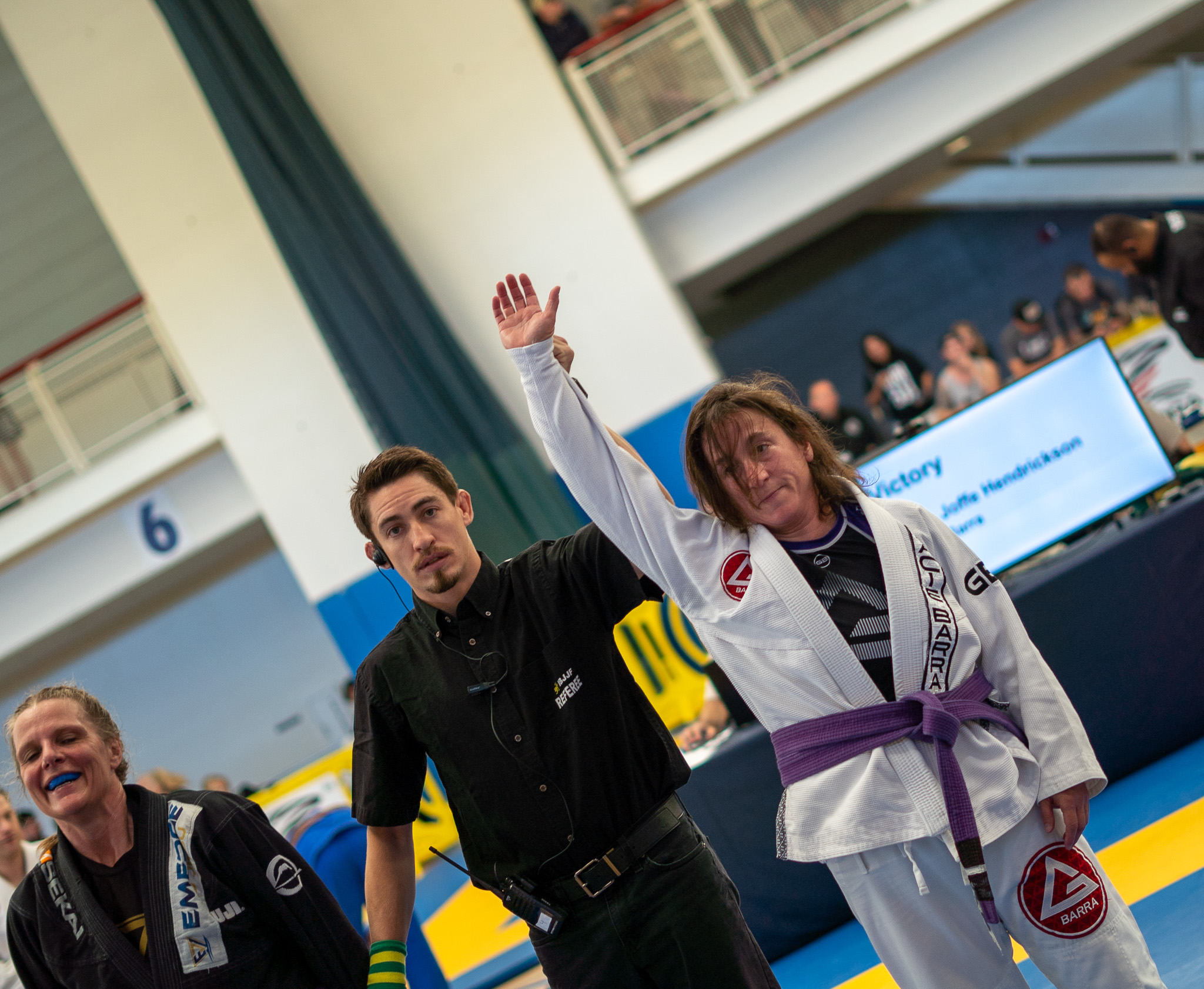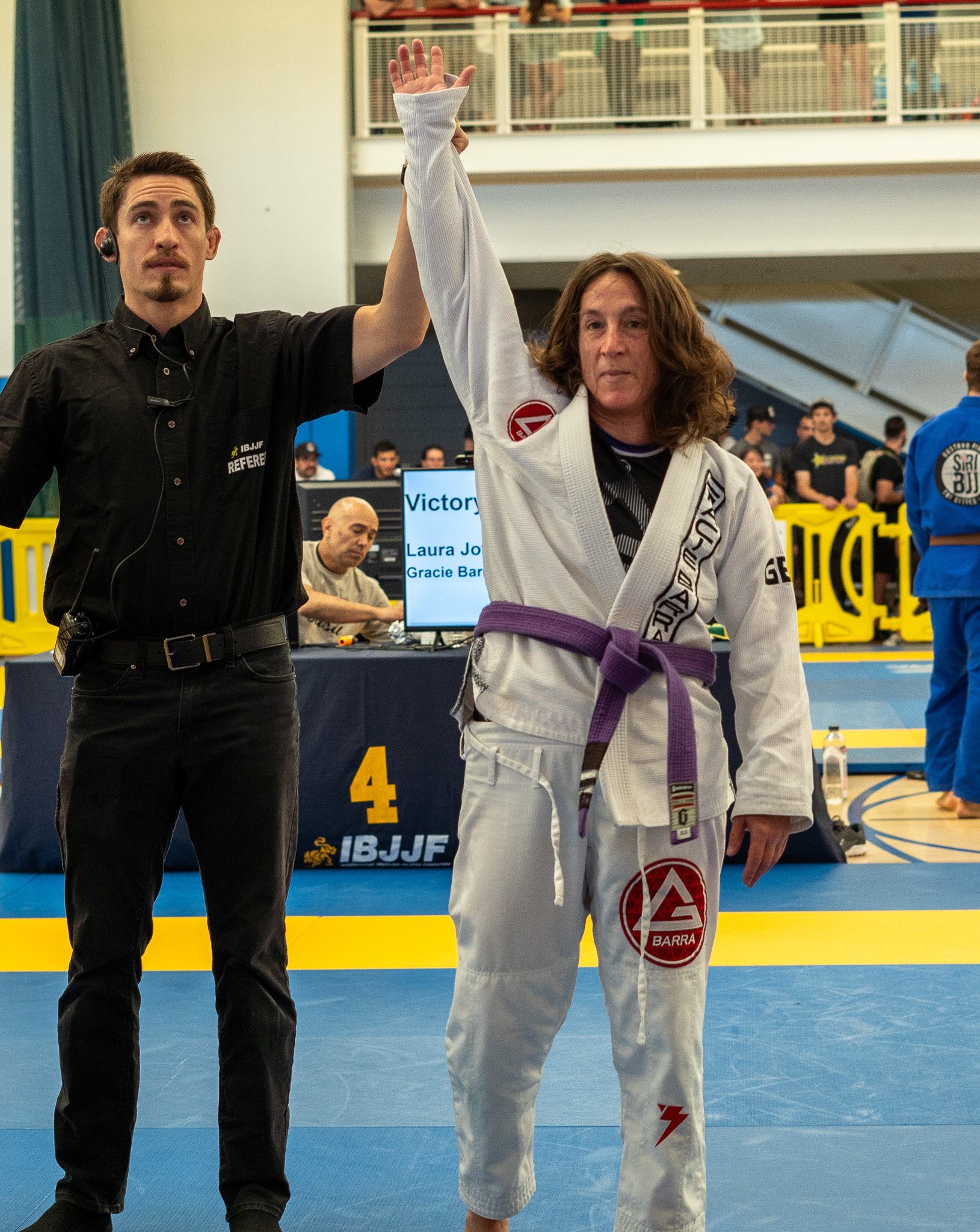 Lots of good matches at the Portland Open this weekend. We had four competitors and two came away with gold: Laura H. in the purple belt master 4/heavy division (she fought up 3 weight classes and went down a division to get some matches) and Prof. Joshua in the black belt middle weight NoGi adult division.